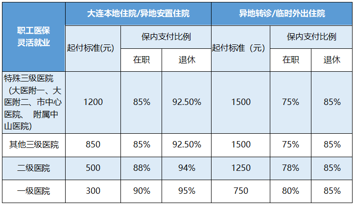 1、医保住院报销比例延续了之前的政策,没有发生变化。城镇职工基本医疗保险本地住院和异地安置住院报销比例、异地转诊和临时外出住院报销比例如图: